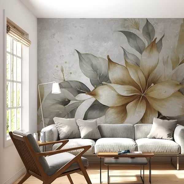 Stenske poslikave Veja cvetja na ozadju iz imitacije betona Št. w08623