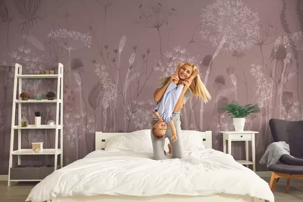 Stenske poslikave Zračni regrat in divje cvetlice v akvarelnem slogu v rožnatih tonih Št. w08637v1
