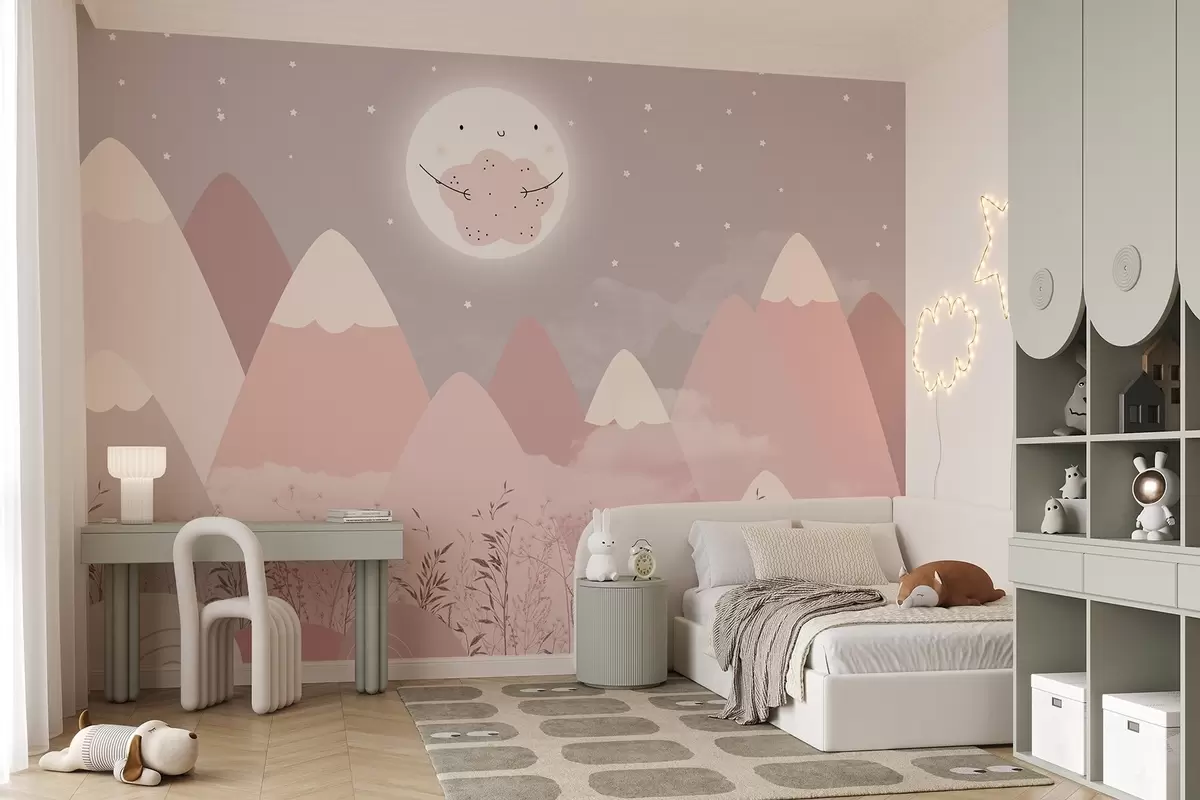 Stenske poslikave Otroške gore s prikupno luno in rastlinami na dnu Št. w08659
