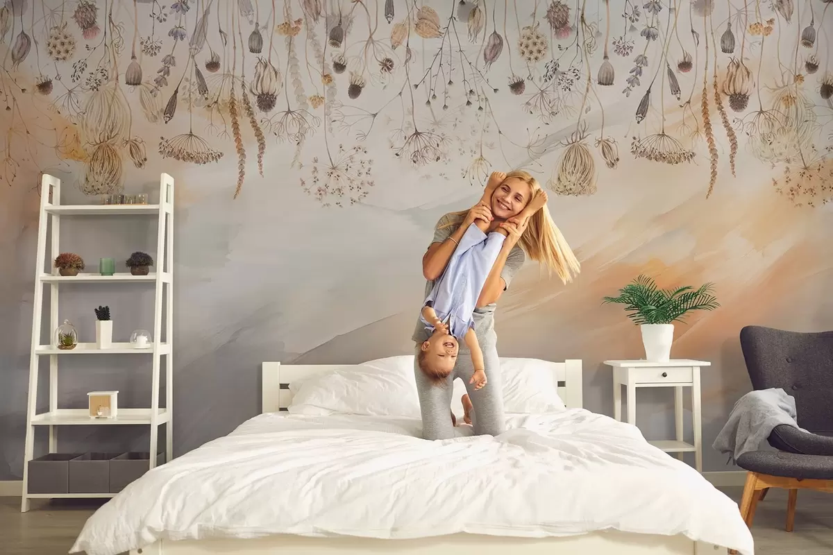 Stenske poslikave Divje cvetlice v akvarelnem slogu v pastelnih tonih na ozadju s čopičem Št. w08681