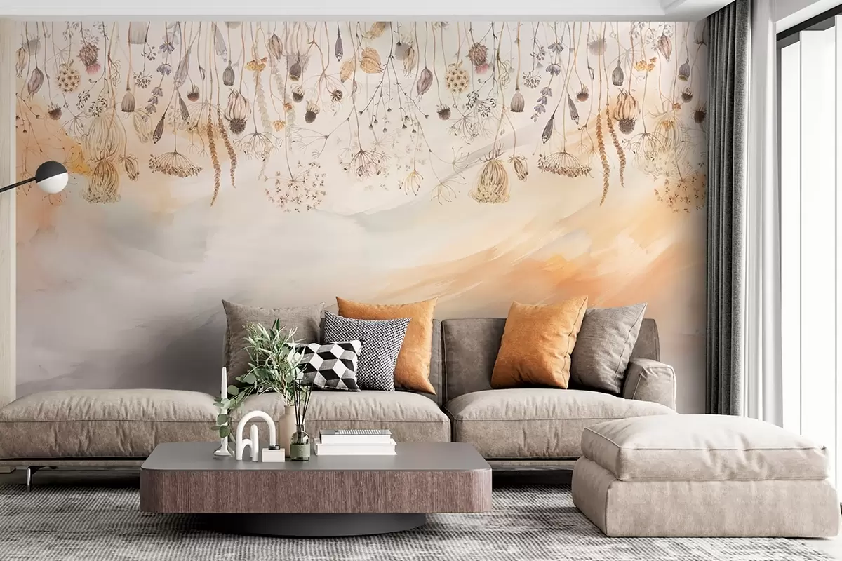 Stenske poslikave Divje cvetlice v akvarelnem slogu v pastelnih tonih na ozadju s čopičem Št. w08681