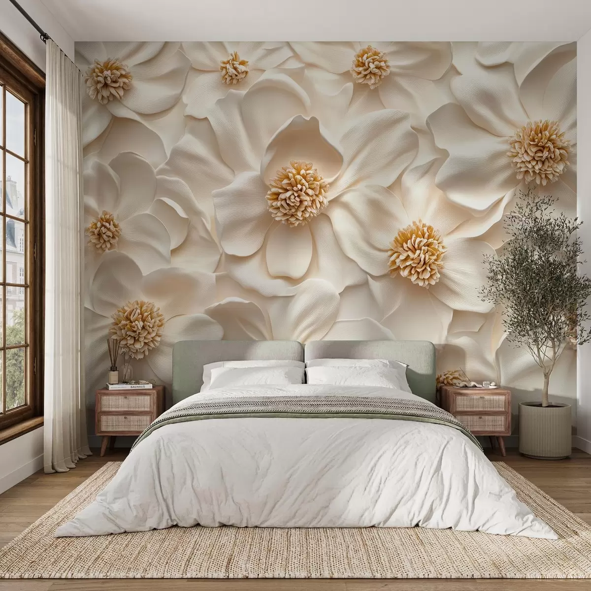 Stenske poslikave 3D bež cvetlična kompozicija z rumenimi poudarki Št. w08691