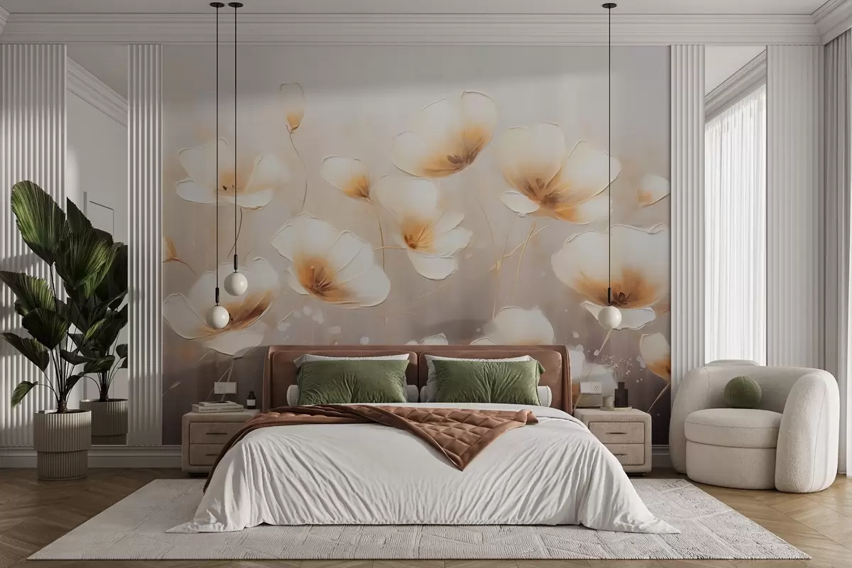 Stenske poslikave Elegantno cvetje z nežnimi, mehkimi cvetnimi lističi v toplih odtenkih Št. w08746