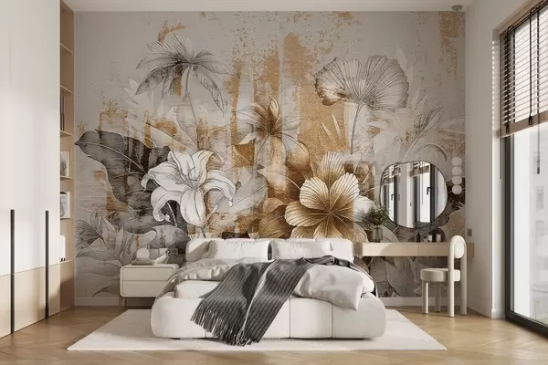 Stenske poslikave Vintage dizajn z eksotičnim cvetjem in rastlinami Št. w08767
