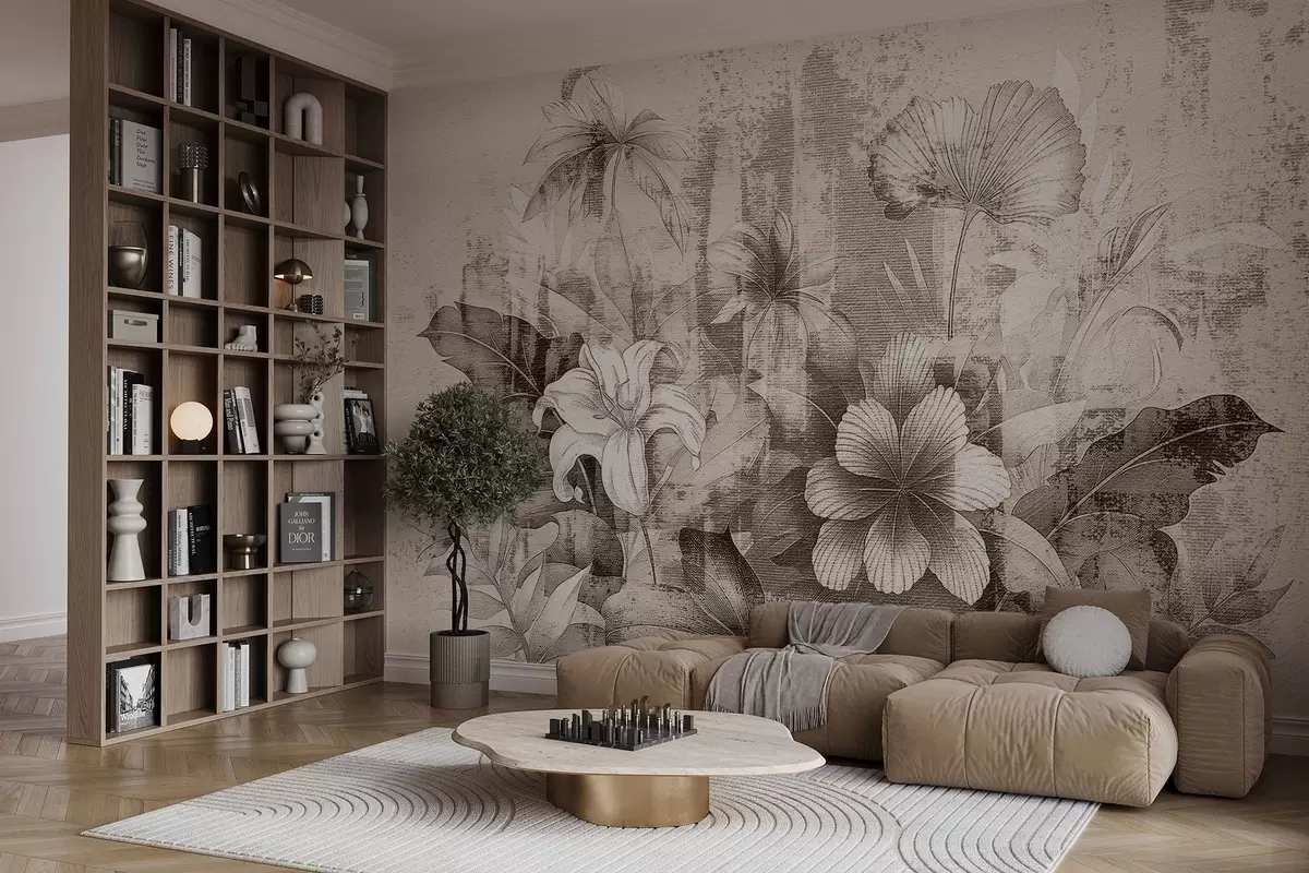 Stenske poslikave Vintage dizajn z eksotičnim cvetjem in rastlinami Št. w08767v2