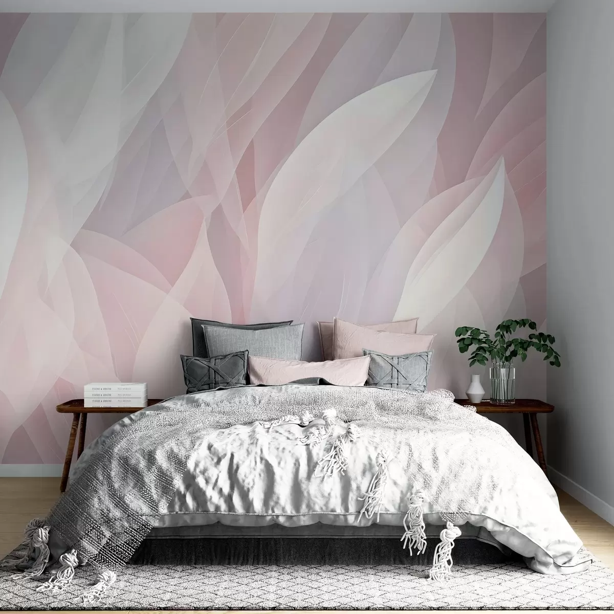 Stenske poslikave Abstraktna oblika z mehkimi oblikami v obliki cvetnih listov v rožnatih in belih odtenkih, ki ustvarjajo večplasten učinek Št. w08774