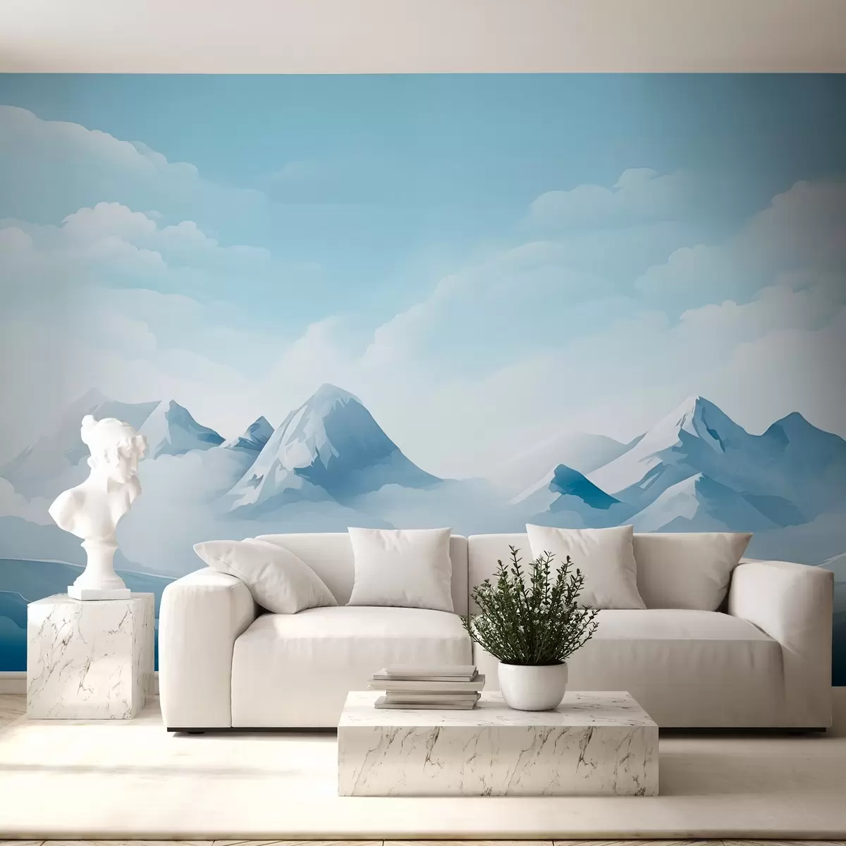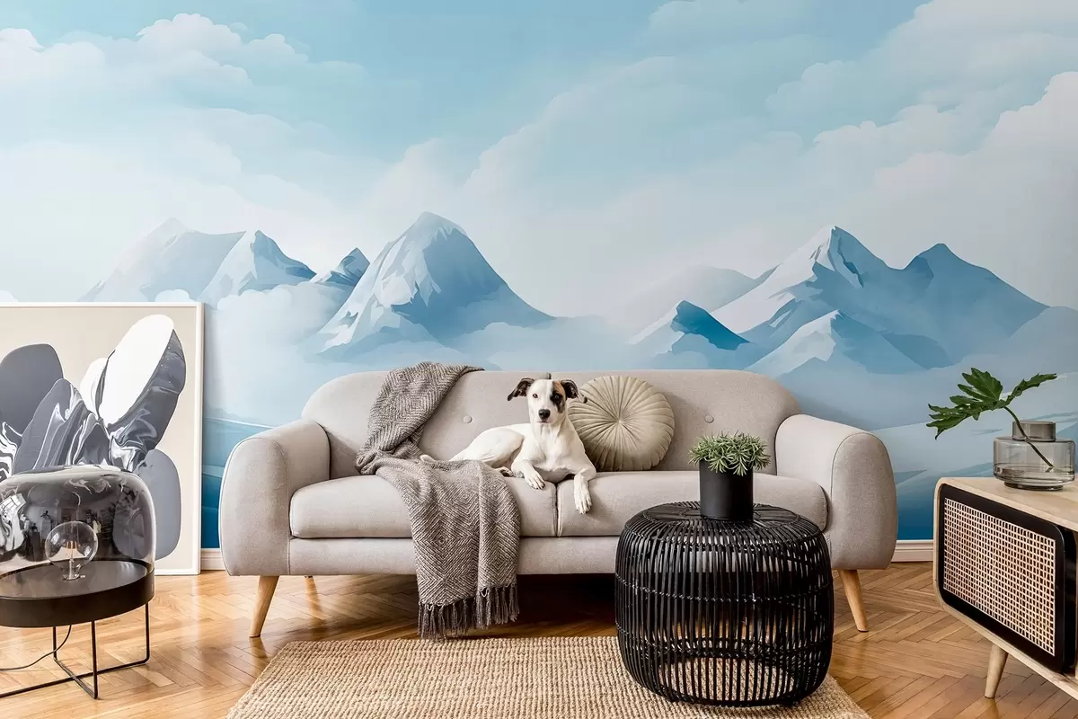 Stenske poslikave Minimalistični modri oblaki in gore, ledeno vreme Št. w08811