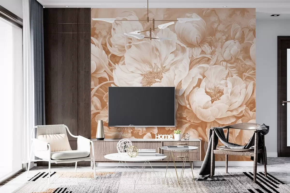 Stenske poslikave Tulipani in pivonije, cvetlična kompozicija v bež slogu oljnega čopiča Št. w08817v1
