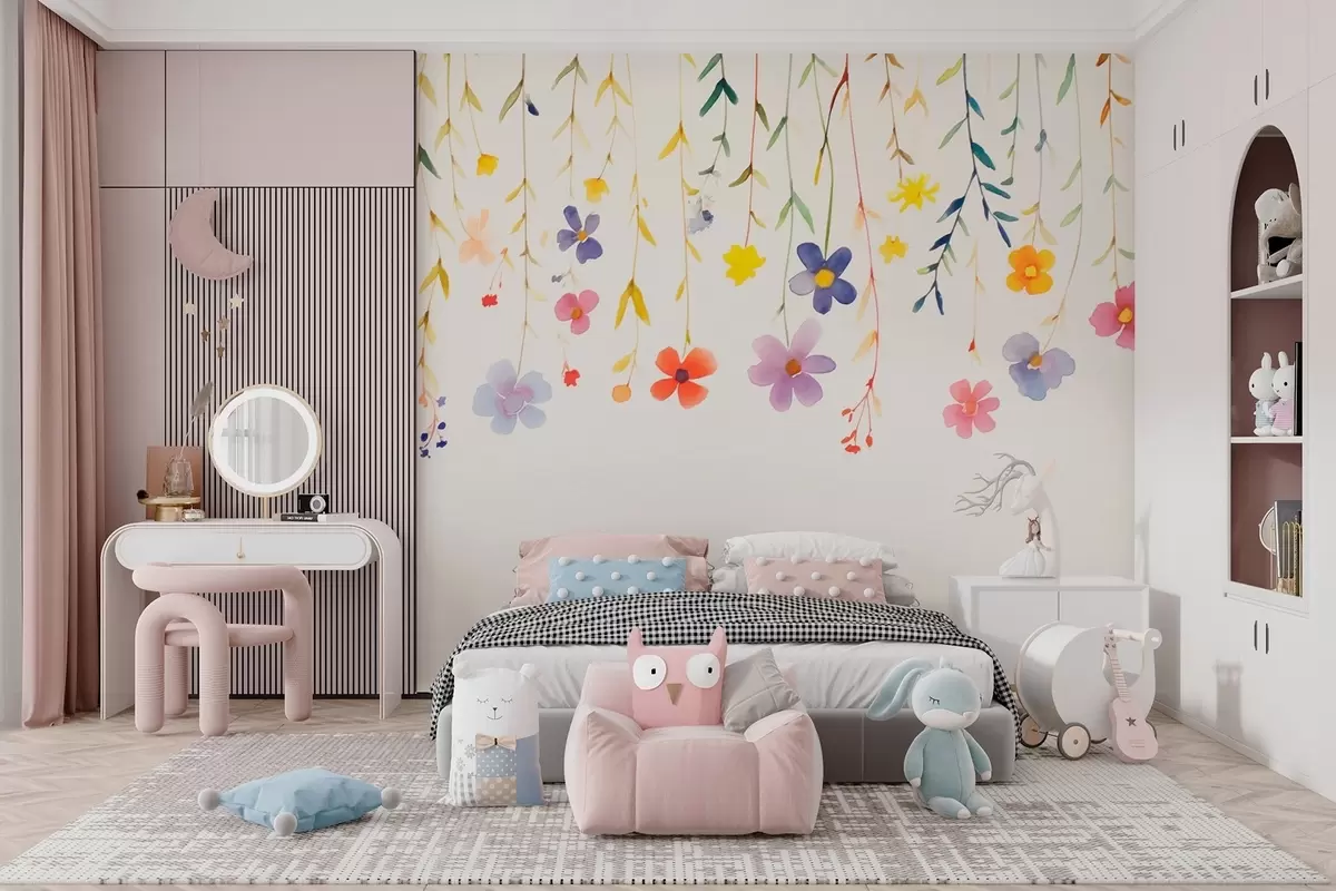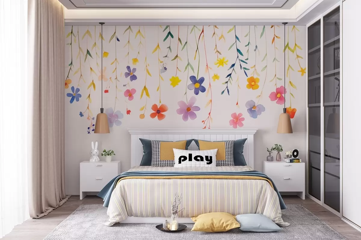 Stenske poslikave Divje cvetlice v akvarelnem slogu, preproste in barvite Št. w08851
