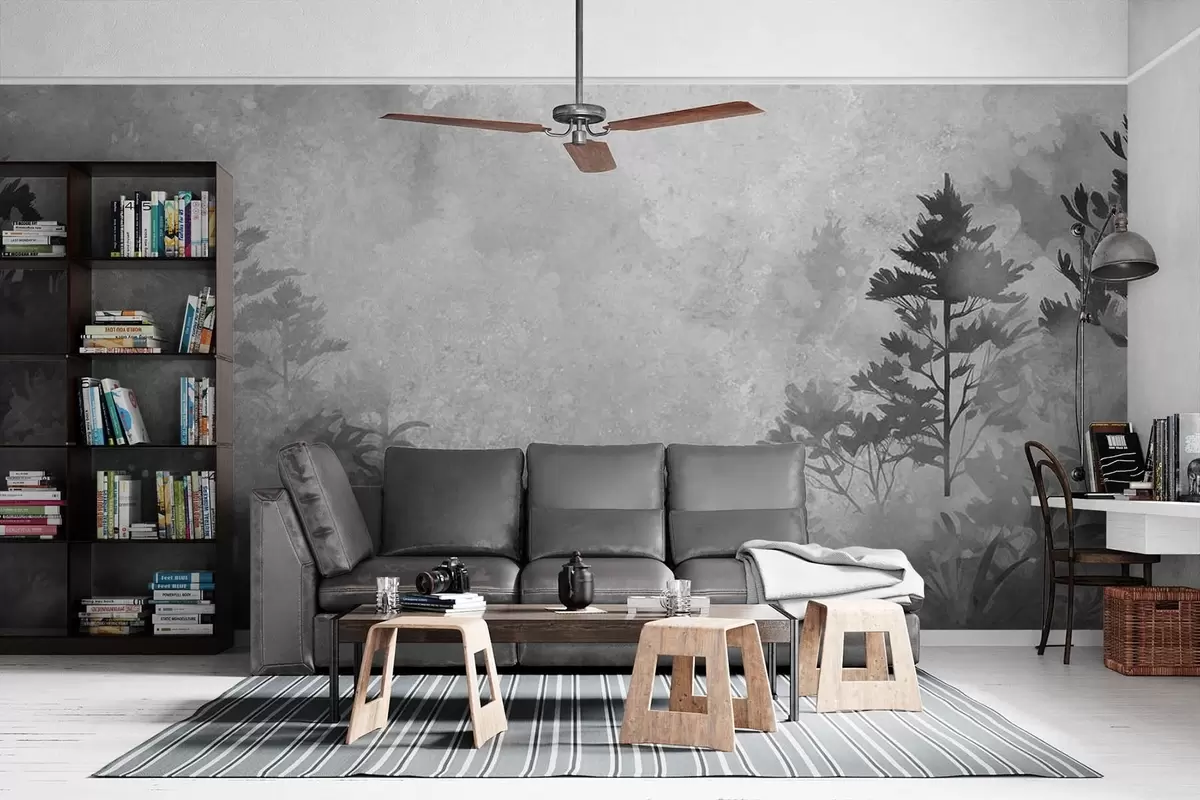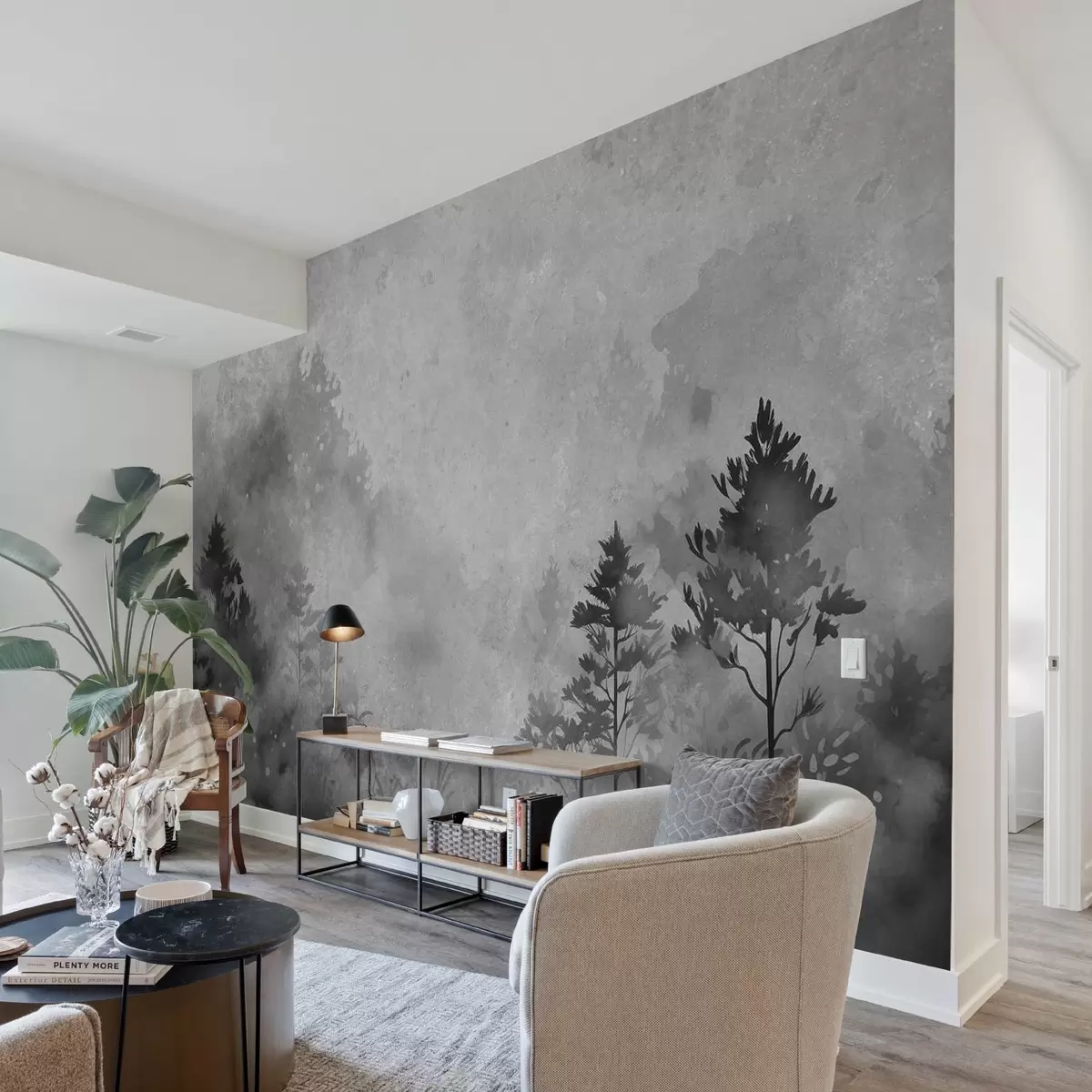 Stenske poslikave Gozd, imitacija akvarela v črno-belem slogu Št. w08862v1