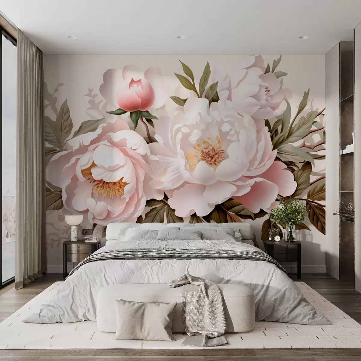 Stenske poslikave Svetlo rožnati popki na rožnatem ozadju Št. w08884