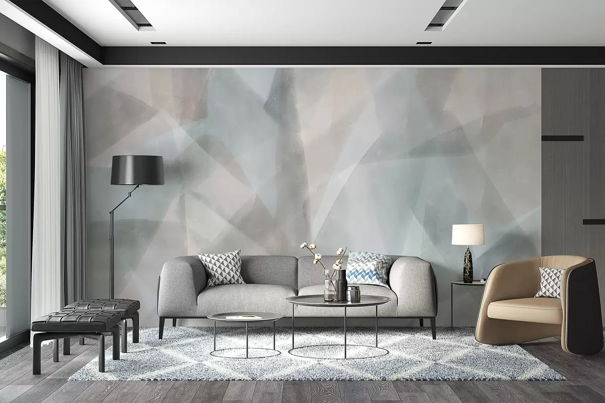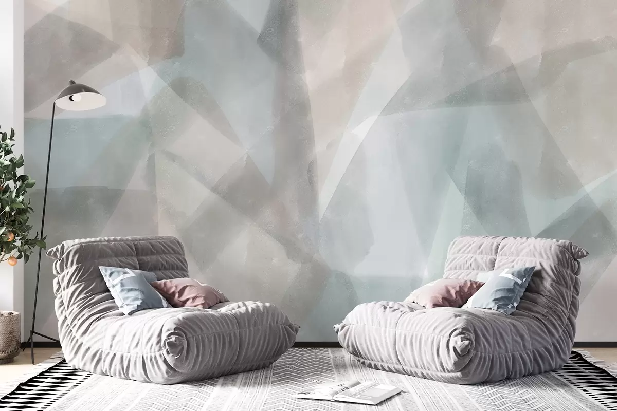 Stenske poslikave Abstraktne geometrijske oblike z učinkom akvarela, mehke pastelne barve Št. w08919