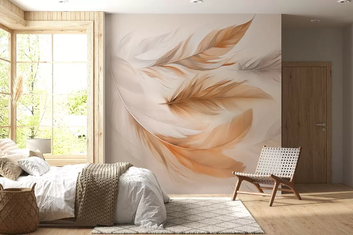 Stenske poslikave Plavajoče zračno rjavo-sivo perje Št. w08968