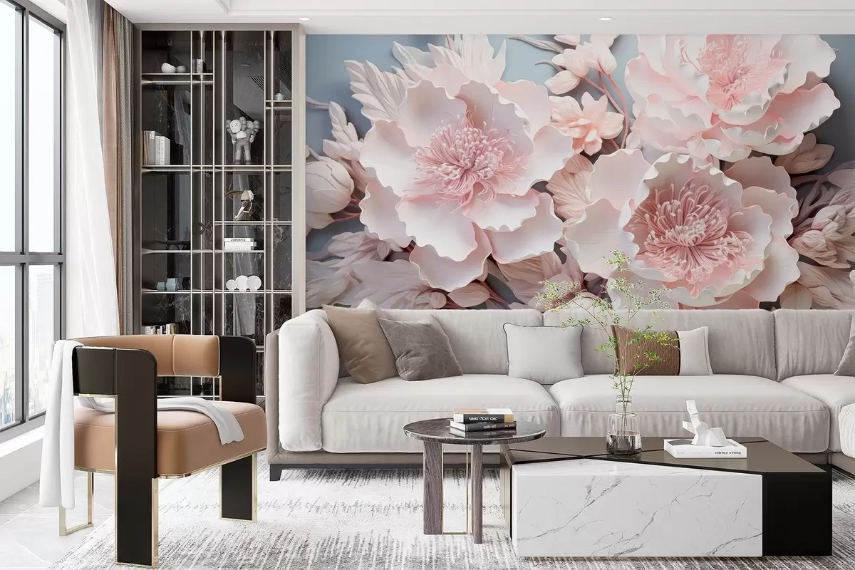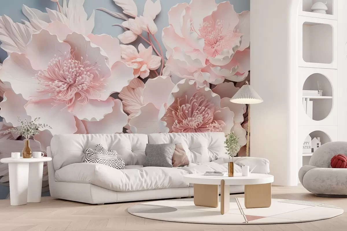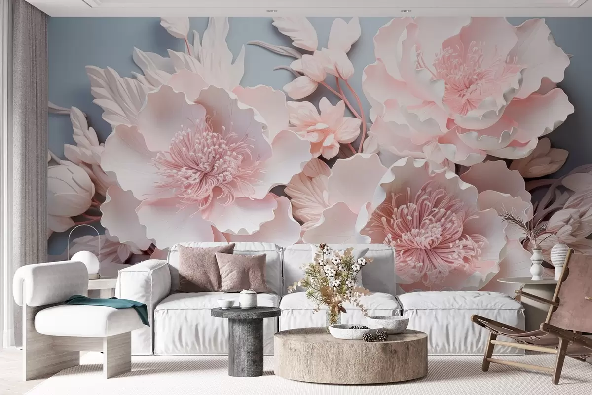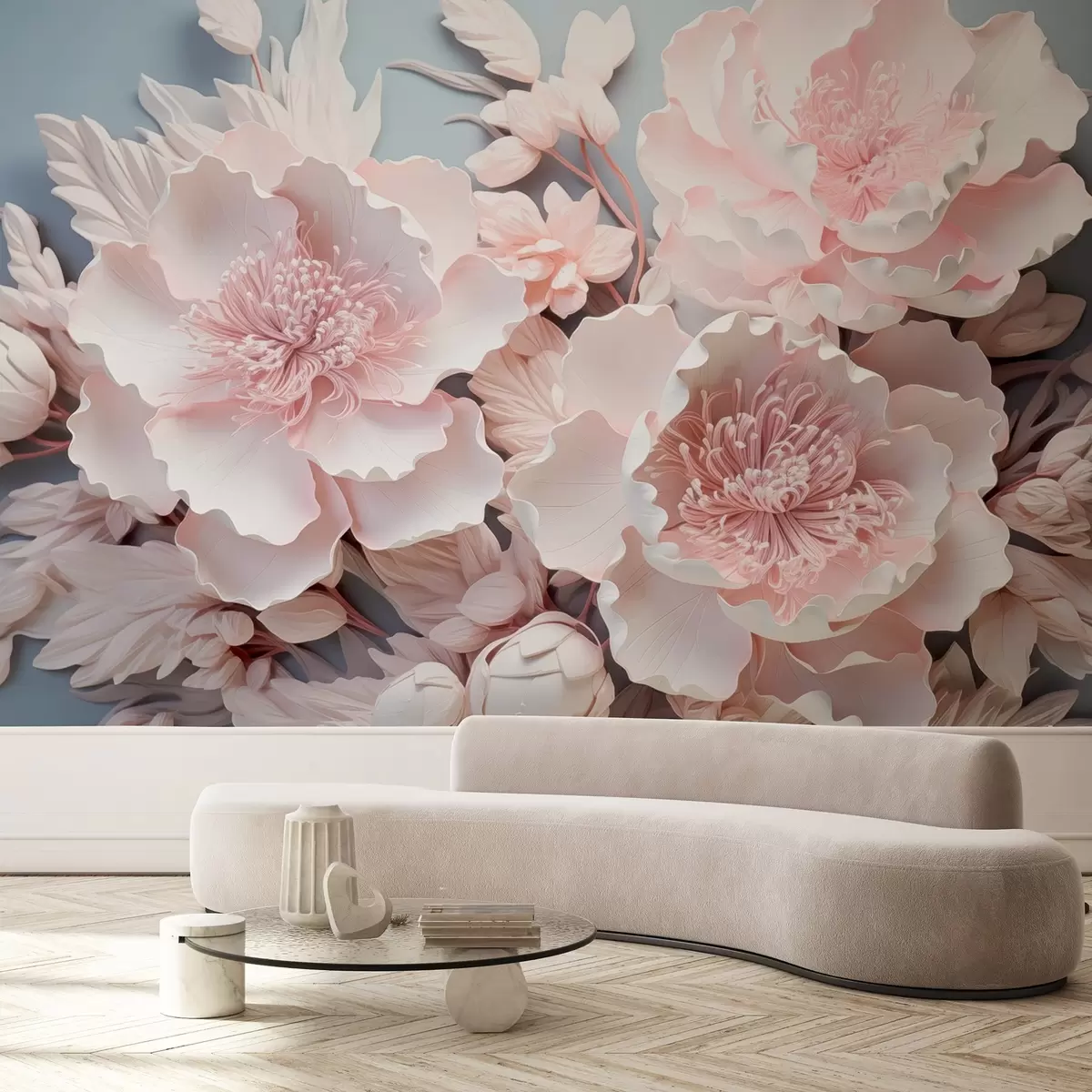 Stenske poslikave Obsežni rožnati cvetovi v nežnih odtenkih Št. w08988