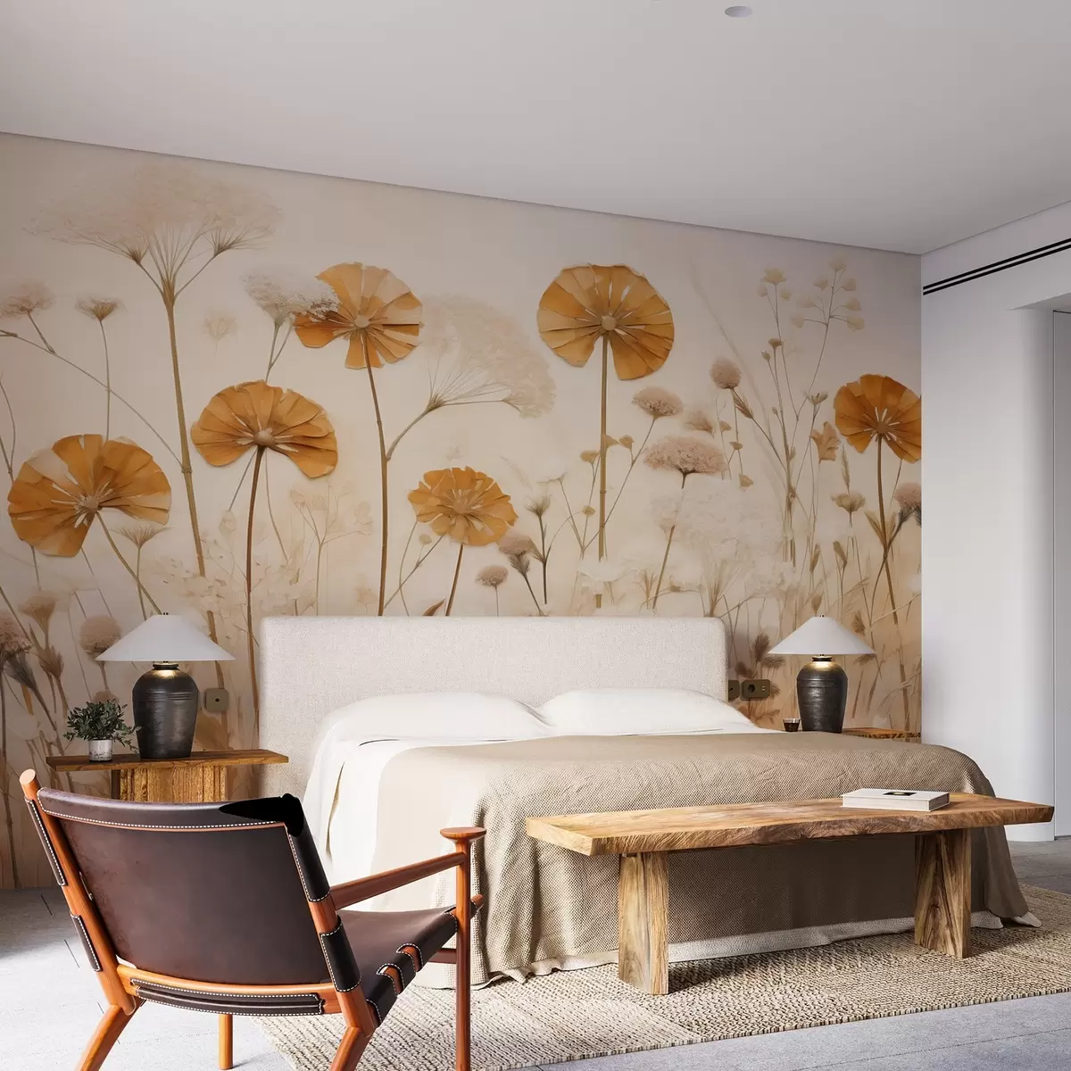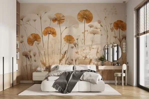 Stenske poslikave Divje cvetlice z rumenimi odtenki v toplih tonih Št. w08994