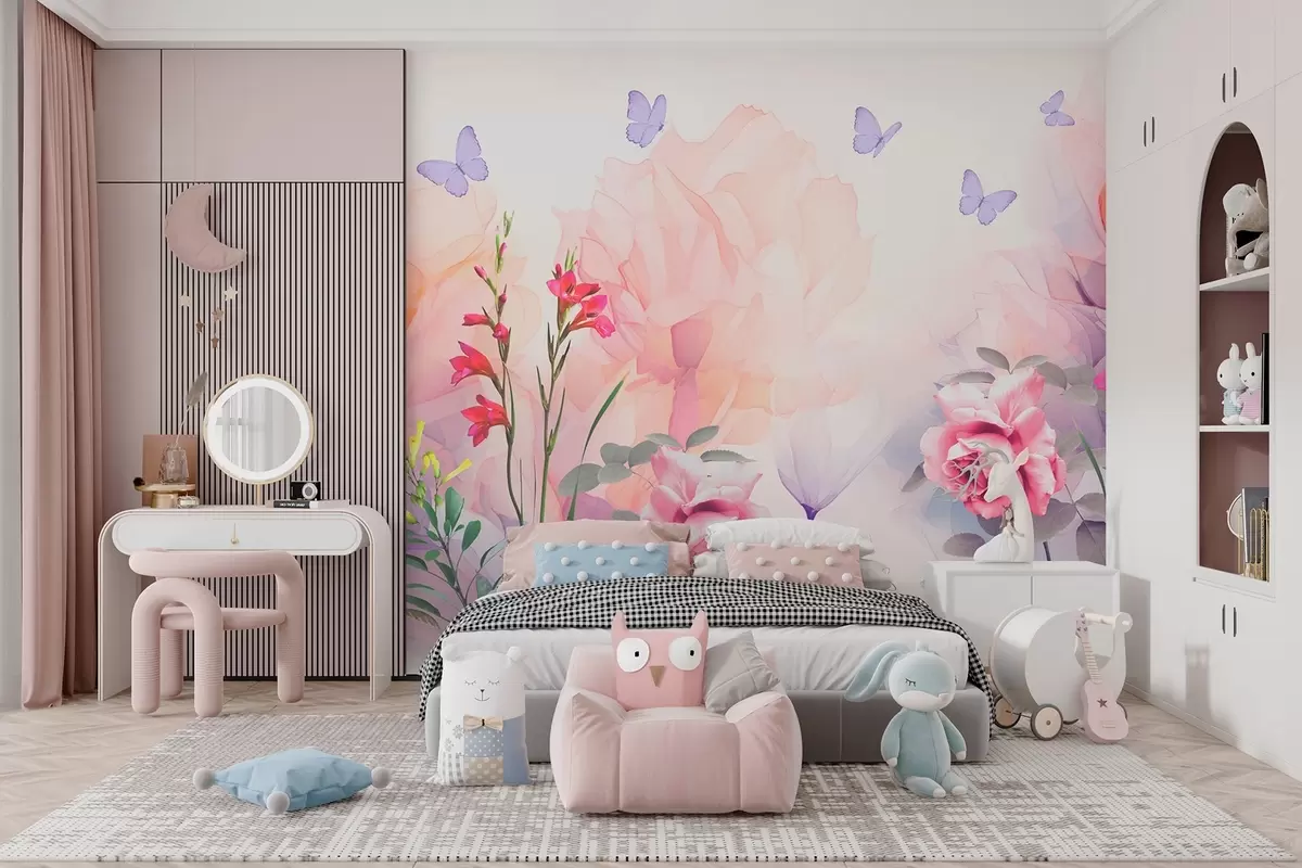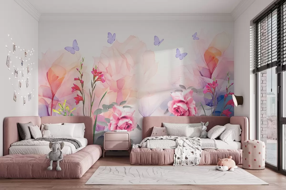 Stenske poslikave Cvetje z metulji in vrtnicami v akvarelnem slogu Št. w09002