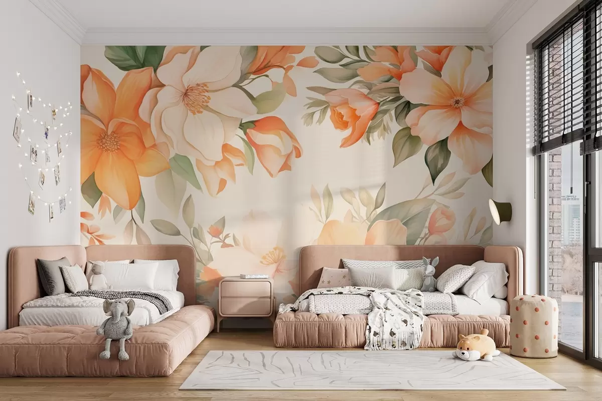 Stenske poslikave Velike oranžne rože v akvarelnem slogu Št. w09023