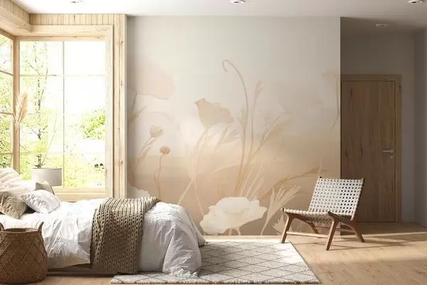 Stenske poslikave Beli maki v bež-sivih tonih Št. w09041