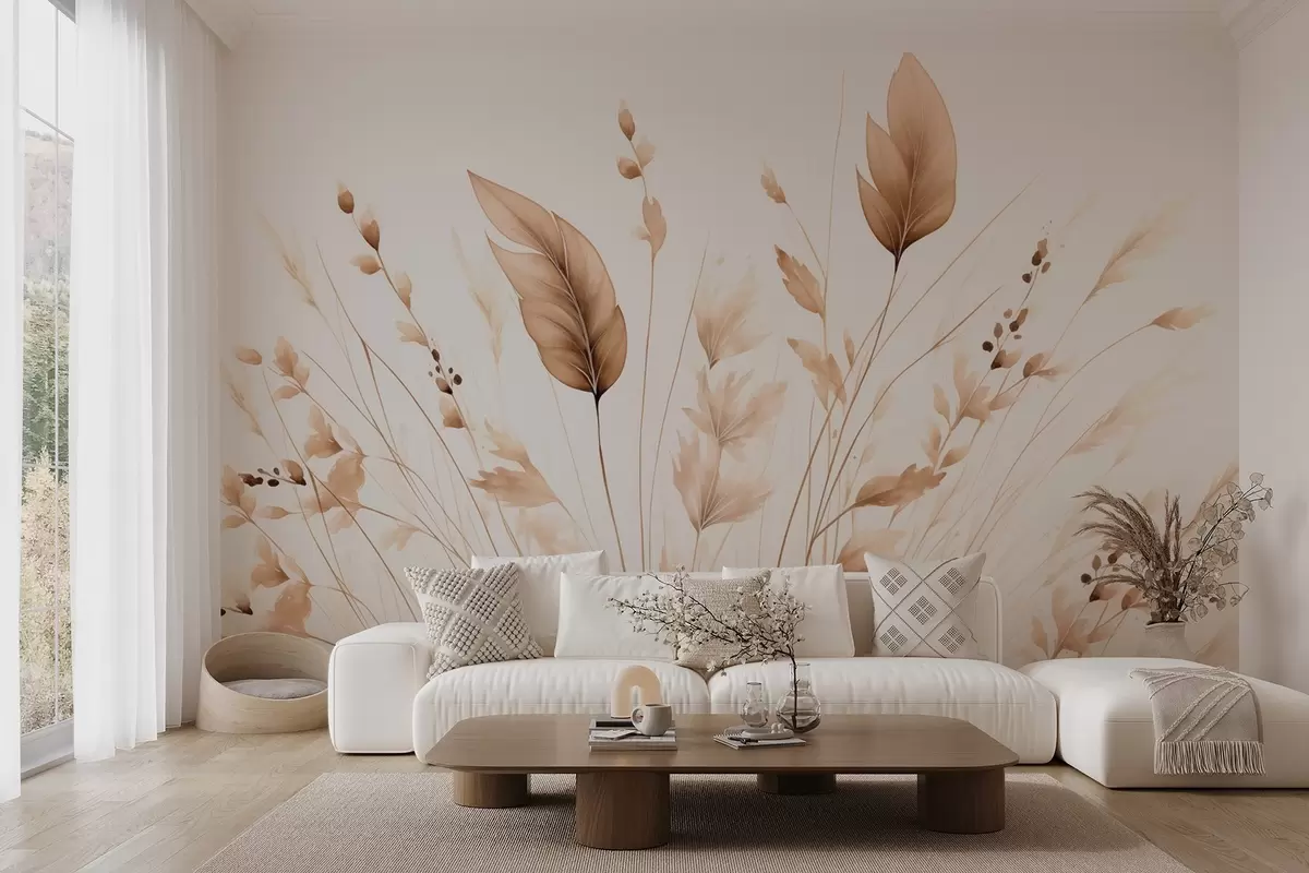 Stenske poslikave Ples zračnih suhih trav v vetru v mirnih bež barvah Št. w09045