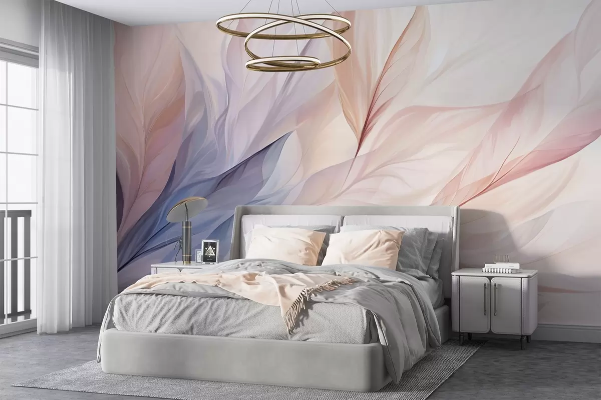 Stenske poslikave Abstraktna cvetlična zasnova s tekočimi cvetnimi listi v pastelnih odtenkih rožnate, breskove in modre barve, ki ustvarjajo mehko in zasanjano kompozicijo Št. w09049