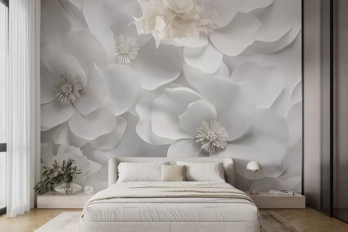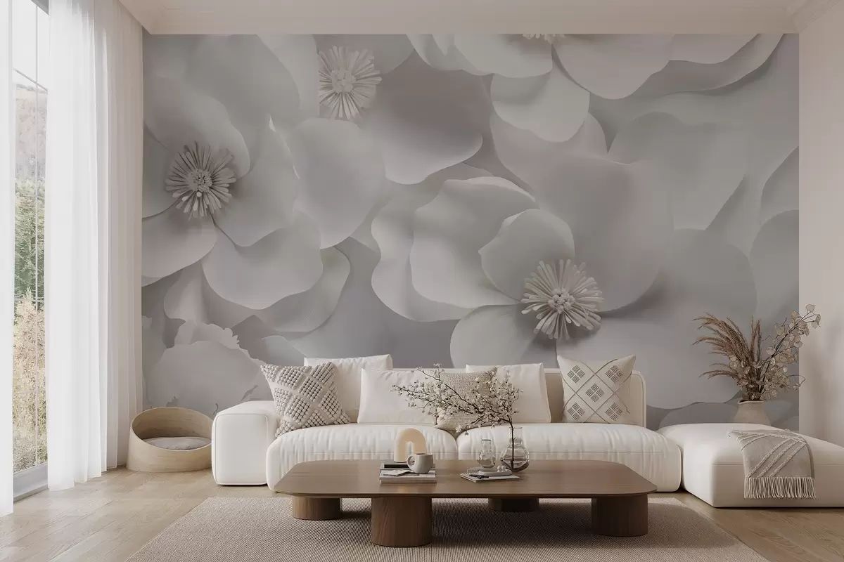 Stenske poslikave Beli cvetovi z nežnimi cvetnimi lističi, razporejeni v gostem grozdu, ustvarjajo občutek čistosti in elegance na belem ozadju Št. w09053