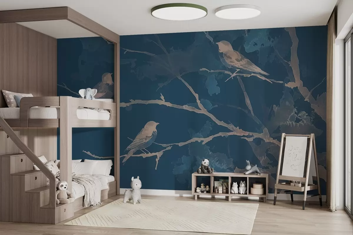 Stenske poslikave Ptice na drevesnih vejah v akvarelnem slogu Št. w09064v1