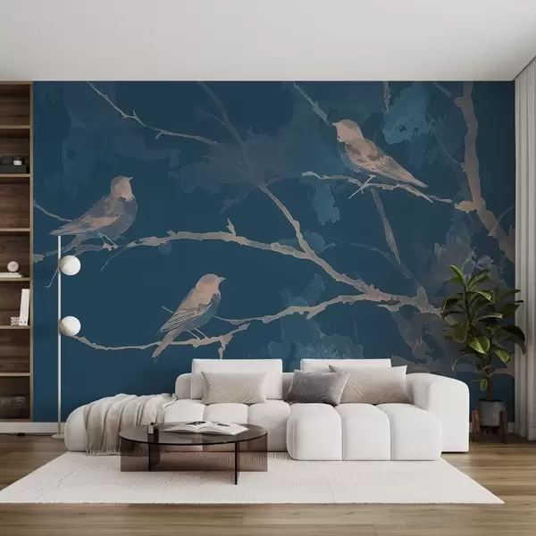 Stenske poslikave Ptice na drevesnih vejah v akvarelnem slogu Št. w09064v1