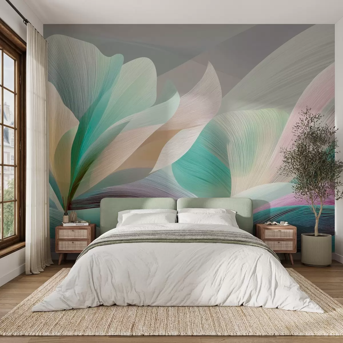 Stenske poslikave Elegantna abstrakcija z gladkimi krivuljami, ki spominjajo na cvet in valove Št. w09075