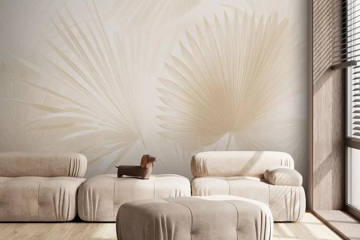 Stenske poslikave Mehki navijači tropskih listov na svetlem ozadju Št. w09084v1