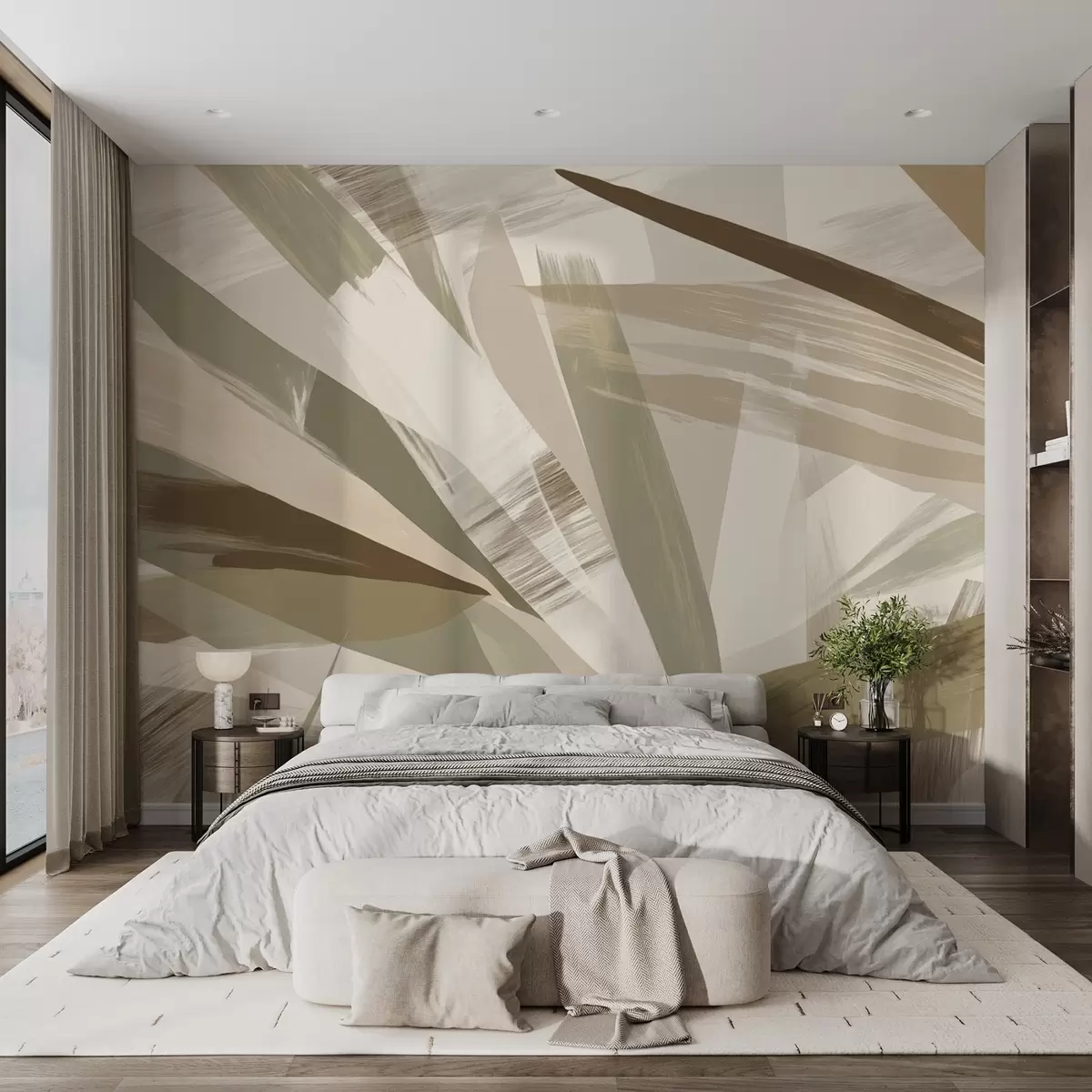 Stenske poslikave Abstraktni listi v zelenih in bež odtenkih Št. w09091