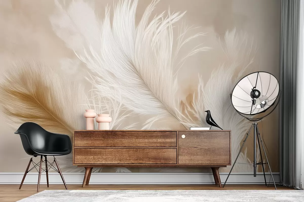 Stenske poslikave Leteče zračno perje na bež ozadju Št. w09102