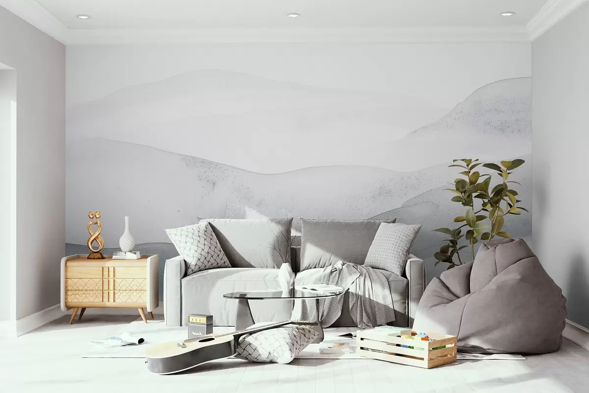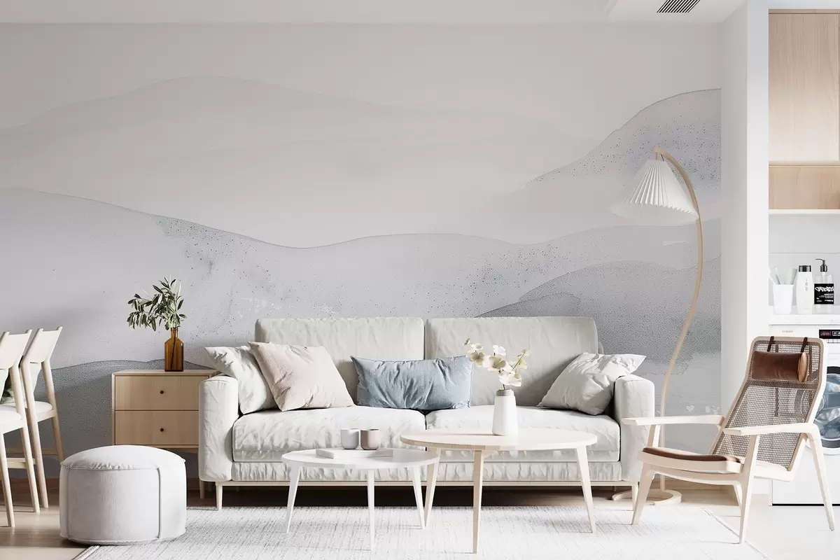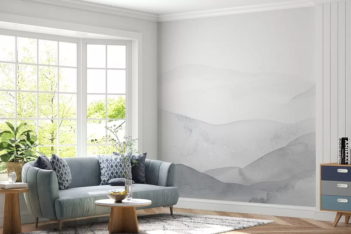 Stenske poslikave Minimalistične meglene gore v mehkih modrih odtenkih Št. w09223v2