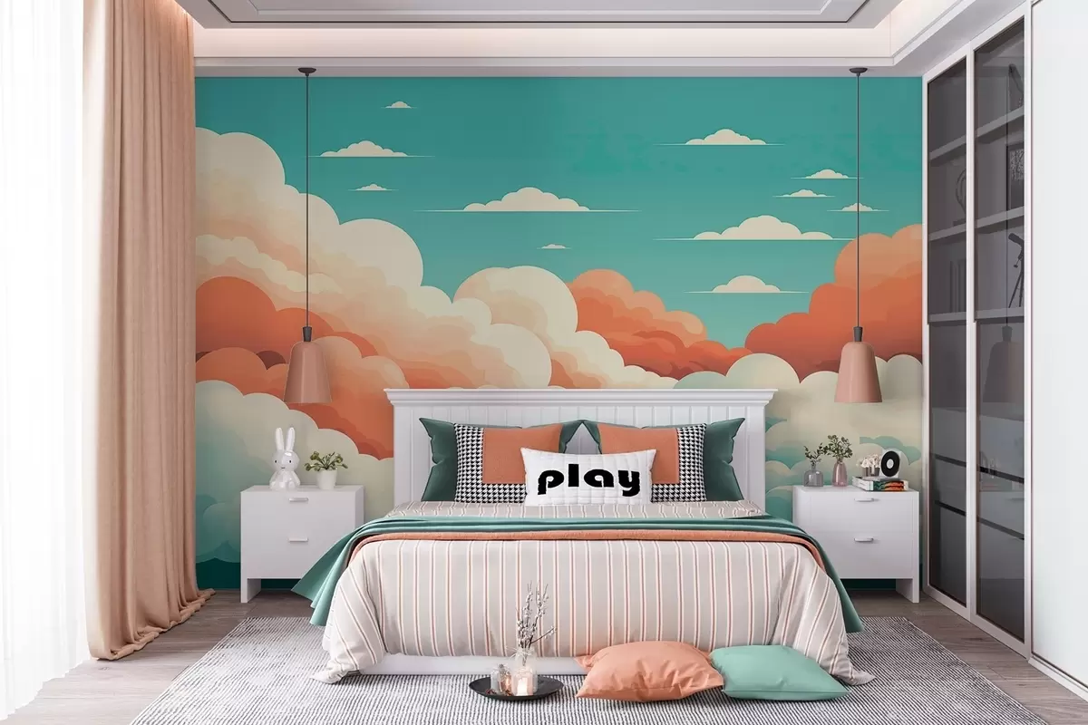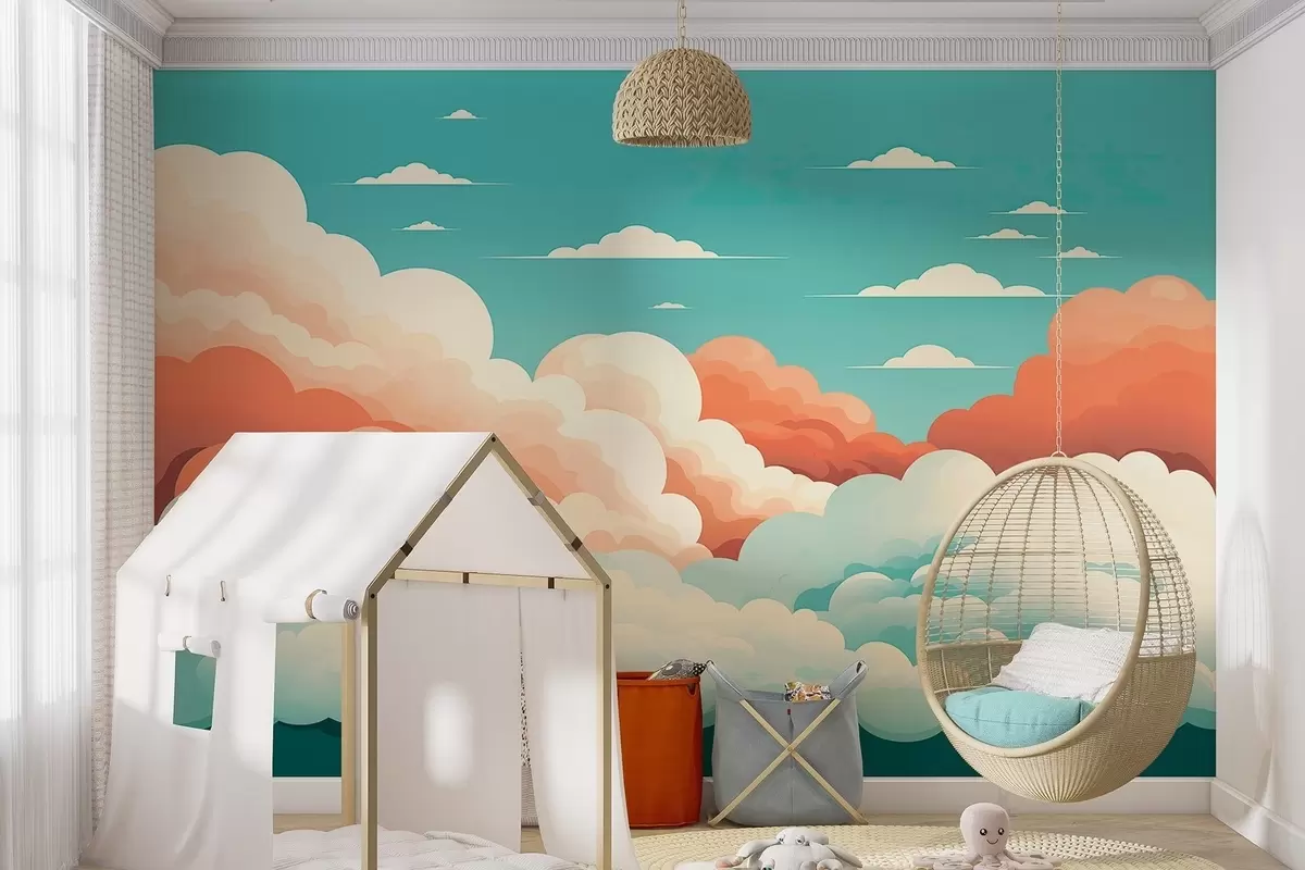 Stenske poslikave Čudoviti oblaki v slogu risank pod modrim nebom Št. w09246