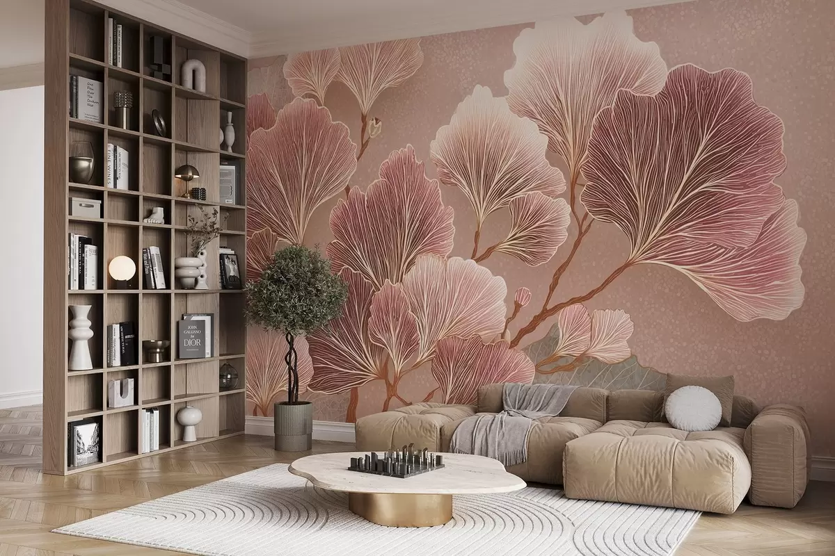 Stenske poslikave Veja listov v rožnatih in vijoličnih odtenkih Št. w09249