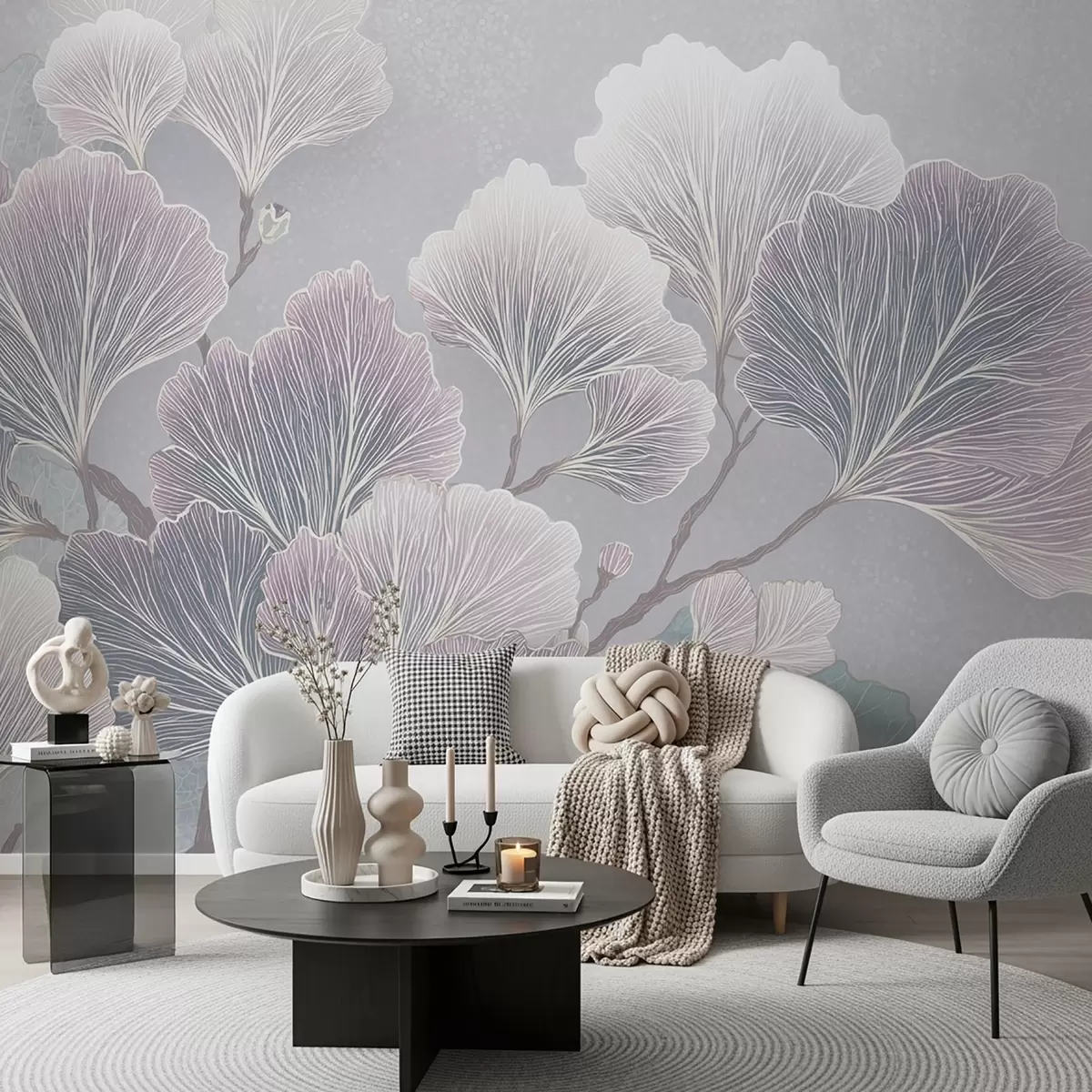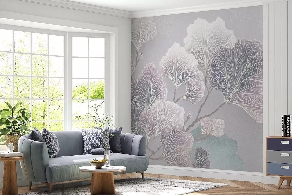 Stenske poslikave Veja listov v modrih odtenkih Št. w09249v1