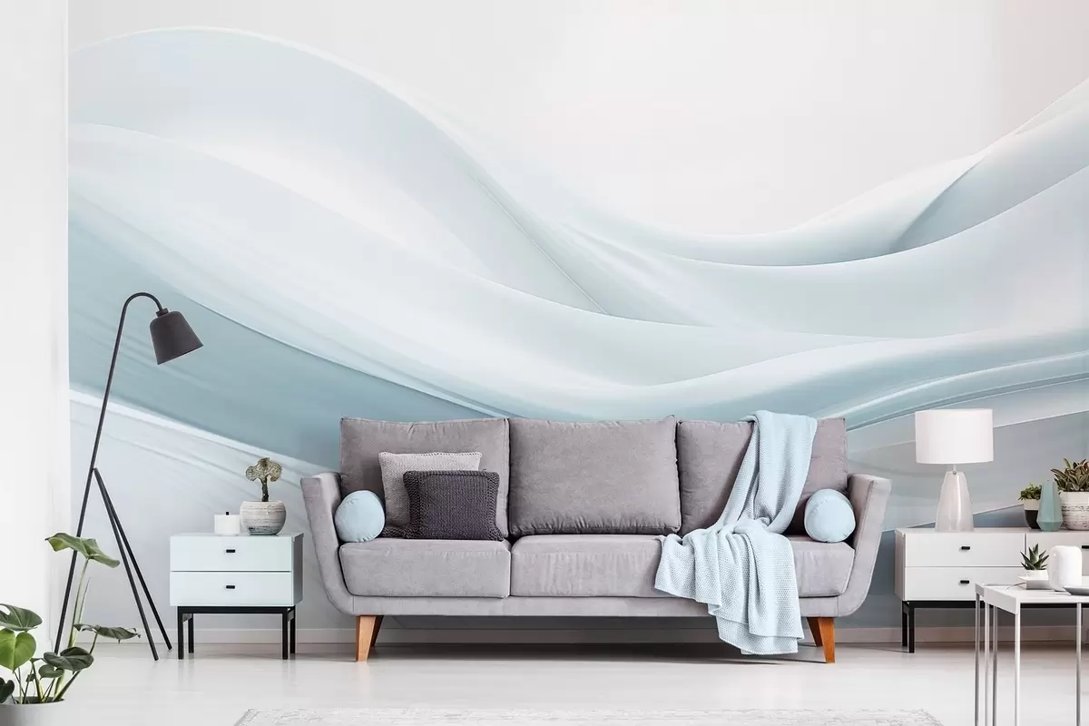 Stenske poslikave Modri valovi tkanine v minimalističnem abstraktnem slogu Št. w09279v2