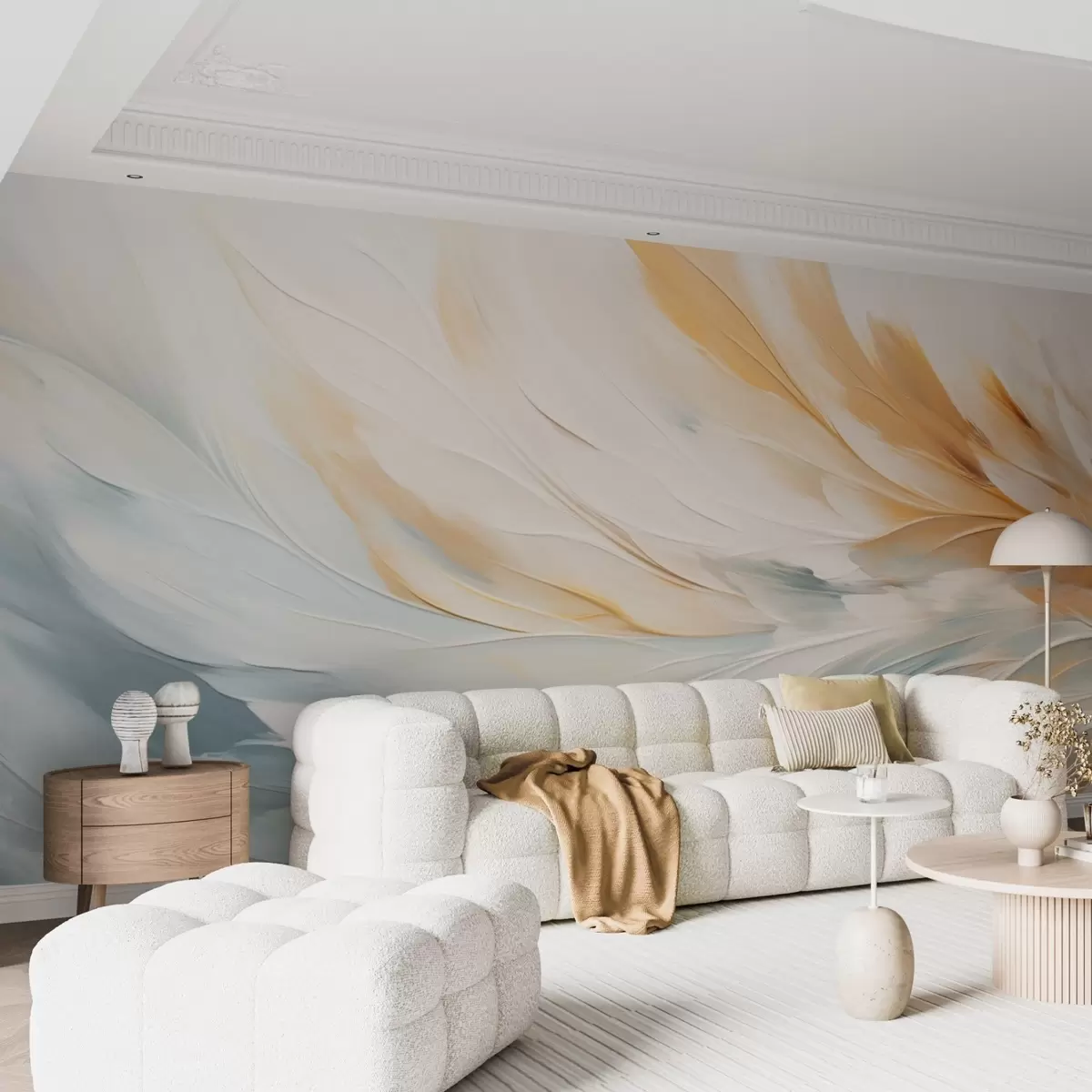 Stenske poslikave Abstraktno perje v mehkih modrih in oranžnih tonih Št. w09283