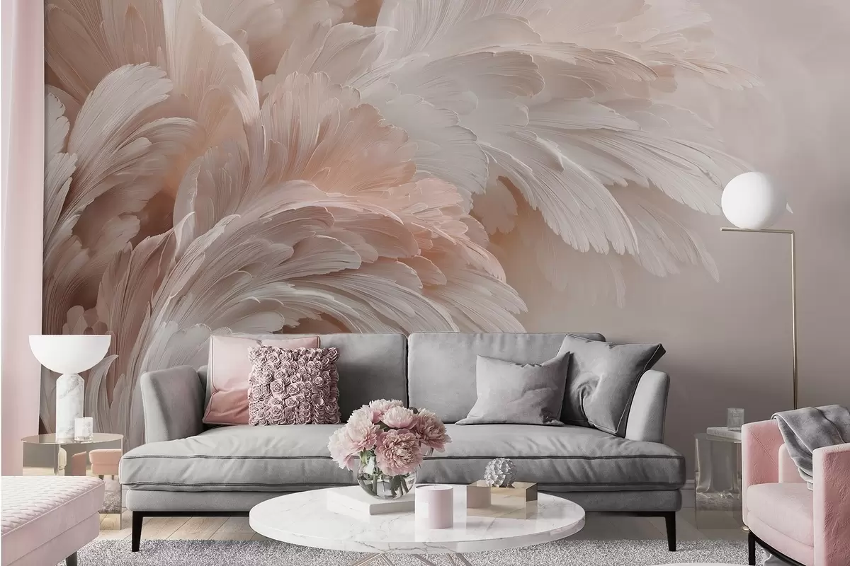 Stenske poslikave Zračna peresa in cvetni lističi v kremasto rožnatih odtenkih Št. w09301