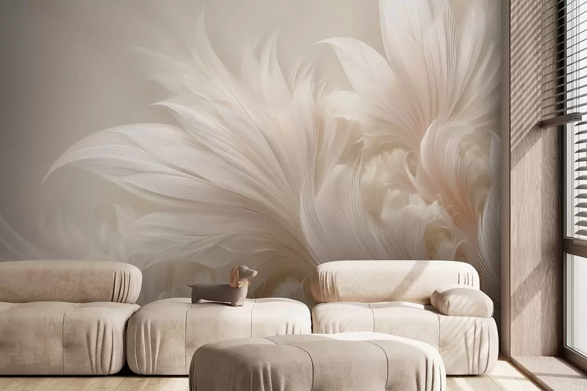 Stenske poslikave Breztežnostno perje v odtenkih vanilijeve kreme Št. w09302