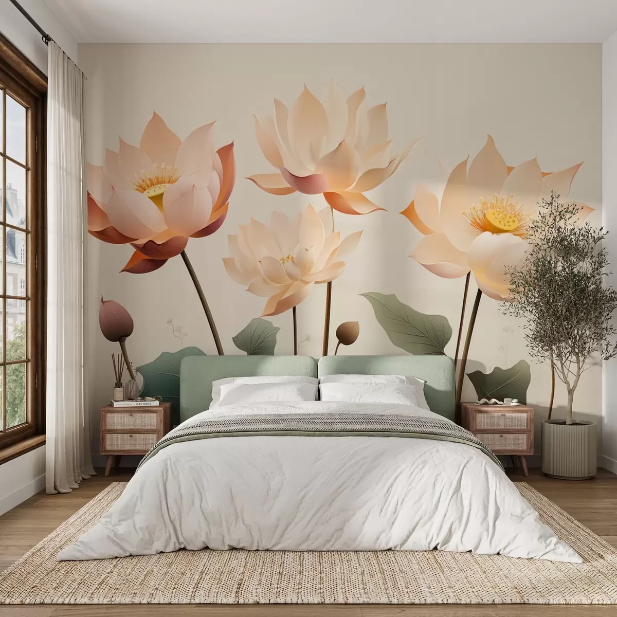 Stenske poslikave Elegantni lotosovi cvetovi v nežni pastelni paleti Št. w09306