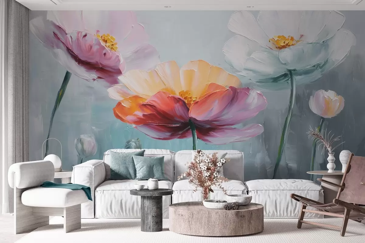 Stenske poslikave Svetle rože v tehniki oljnega slikarstva na modrem ozadju Št. w09310