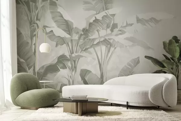 Stenske poslikave Tropski bananini listi v nežnih zelenih odtenkih Št. w09311v1