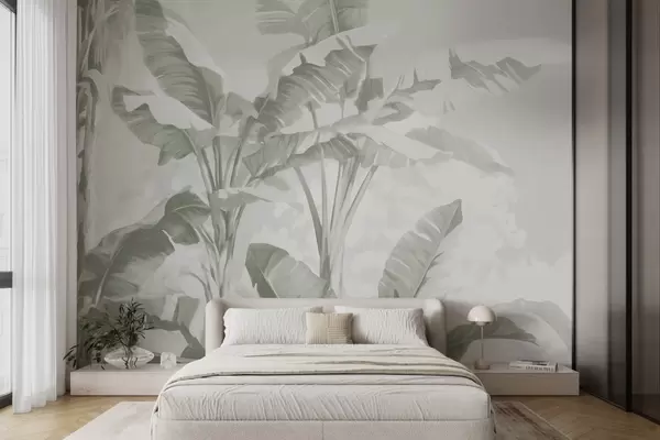 Stenske poslikave Tropski bananini listi v nežnih zelenih odtenkih Št. w09311v1