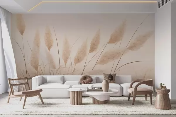 Stenske poslikave Mehka bež barva pampas trave na polju Št. w09324