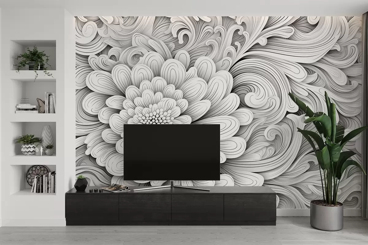 Stenske poslikave Dekorativni črno-beli vzorec v obliki rože in vrtincev Št. w09355