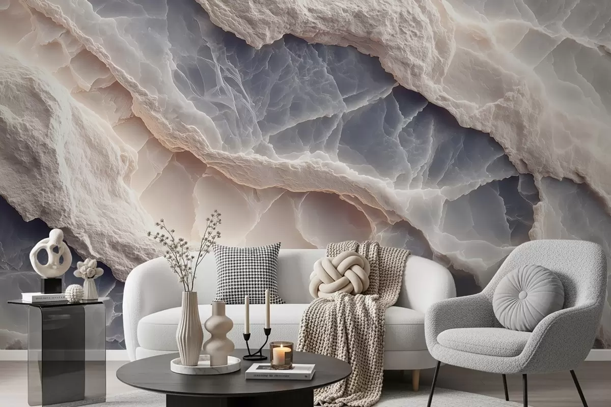Stenske poslikave Elegantna abstrakcija v slogu marmornih plasti in mineralov v modro-bež barvi Št. w09408
