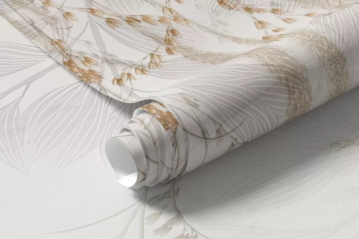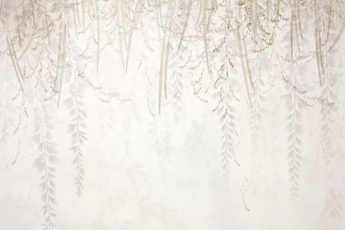 Stenske poslikave Lahka viseča listja in veje v bež barvah Št. w09433