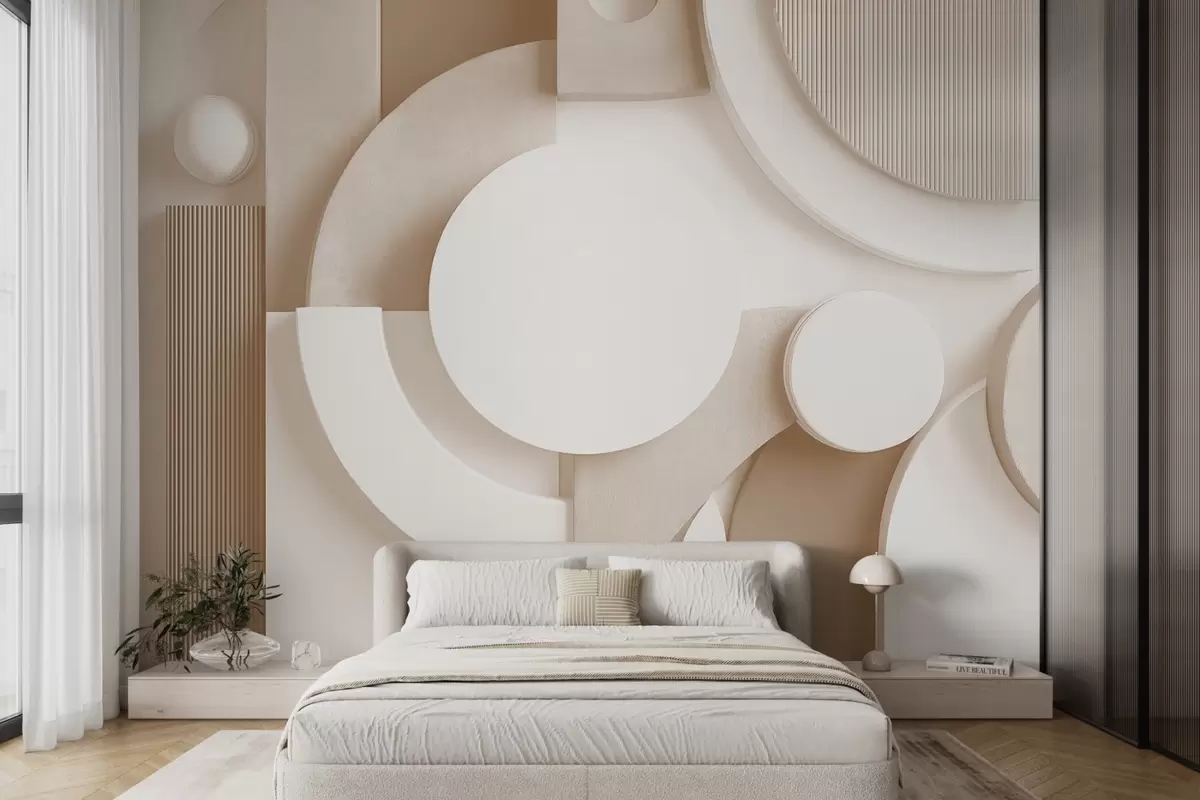 Stenske poslikave Moderna volumetrična abstrakcija v bež odtenkih Št. w09441v1