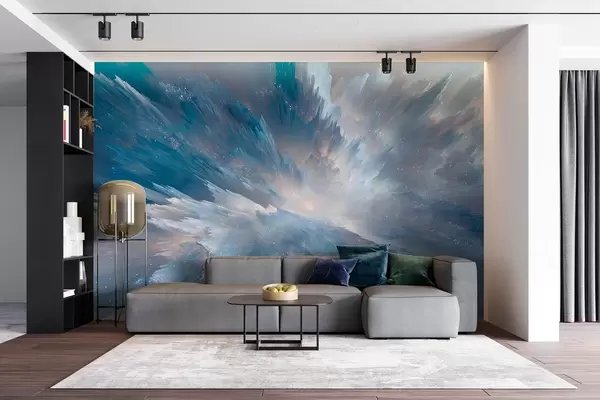 Stenske poslikave Abstraktno kozmično svetlikanje neba v ledenih modrih odtenkih Št. w09461
