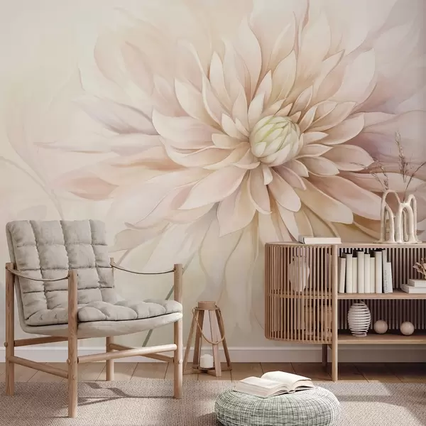 Stenske poslikave Svetlo rožnata dalija z mnogimi cvetnimi listi, mehka tekstura pastelne barve z odtenki zelene in bež barve Št. w09470